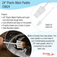 Use the 24″ mash paddle, which is convenient for any brew batch size. Made of durable food-safe plastic, this mash paddle is a must-have in your homebrewing accessories.