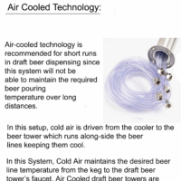 Air-Cooled Technology: The tower’s Air-Cooled technology is ideal for short runs of beer dispensing, ensuring cool beer lines and optimal serving temperatures. While not suitable for long distances, this system efficiently drives cold air from the cooler to the beer tower, maintaining the quality of your draft beer. Air-Cooled draft beer towers are commonly used in Kegerators, Home, and Commercial Bars, making them a popular choice among beer enthusiasts.