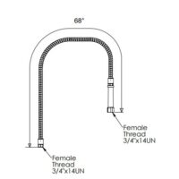 - For an easy replacement, this 68″ hose easily fastens to any brand of pre-rinse faucet.