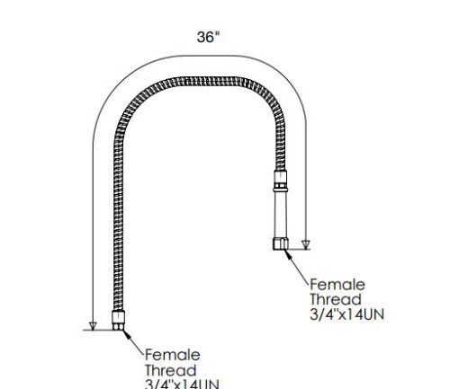 This flexible 36″ hose with handle is made of stainless steel for use with pre-rinse faucet.Pre-rinse Flex- Hose with stainless steel cover connects to standard faucet bases and spray valves, providing handle washers and easy installation for 36″ faucet replacement.