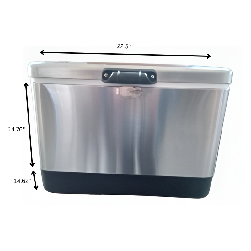 With a 54 qt. capacity, this Steel Ice Box provides excellent ice retention, keeping beverages cold for extended periods during outdoor events, catering services, and mobile bar operations. The steel-belted construction ensures durability and strength, making it ideal for frequent transport and heavy-duty use.